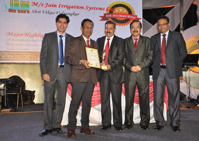 The award was received by Mr Vikas Valsangkar, Vice President–Bulk Polymer, Jain Irrigation, at the Top Customer and CS Felicitation ceremony in Pune on February 18, 2014 by Mr Prabhat Singh, Director–Marketing, GAIL India.