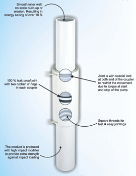 Jain Thread Loc Plus™ Joint uPVC Column Pipes conforming to above specifications along with Fittings & Accessories are available in V4, Shallow, Medium and Deep Well Series for various depths of installation in sizes ranging from 1” to 4” diameter and in standard lengths of 3 meters.