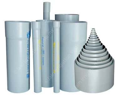 ड्रीप/स्प्रिंकलर्स सिंचाई में पानी के परिवहन के लिये तथा उद-वहन सिंचाई, सतही सिंचाई, उपसतही निकास प्रणाली, पेयजल प्रदाय प्रणाली, राइजिंग मेंन और जल वितरण पाईप लाइन में उपयोग ।
