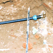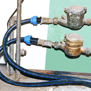 CI पाईप : CI वितरण पाइपलाईन जिसमें टेपिंग करना है, को ट्रेंच में से अनावृत करके वह सतह जहाँ टेपिंग करती है वह अच्छी तरह से स्वच्छ करें। पाईप थ्रेड टेप का इस्तेमाल वितरण पाईप में टेपिंग स्थान पर करें। SS थ्रेडड मेल / फिमेल निपल का इस्तेमाल करते हुए, वितरण पाईप को टेप कर सकते है। जैन पीई होम-लाईन पाइप को SS निपल से कॉम्प्रेसन थ्रेडेड एल्बों की सहायता से कनेक्ट कर सकते है। (डायग्राम देखें)