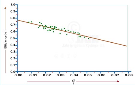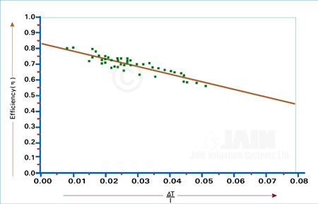 उक्तग्राफ स्पष्टतया हमारे कलेक्टर्स की उच्चतम कार्यक्षमता दर्शाते है। यह पुन: औसतन दैनिक ताप आउटपुट मूल्यांक उदा. 2.3 मी2, कलेक्टर – 5500 Kcal तथा 2.8 मी2 कलेक्टर – 7150 Kcal कृपया नोट करें कि वक्रता, अन्य मार्केट में उपलब्ध कलेक्टर की तुलना में मिथ्या प्रशंसा है।